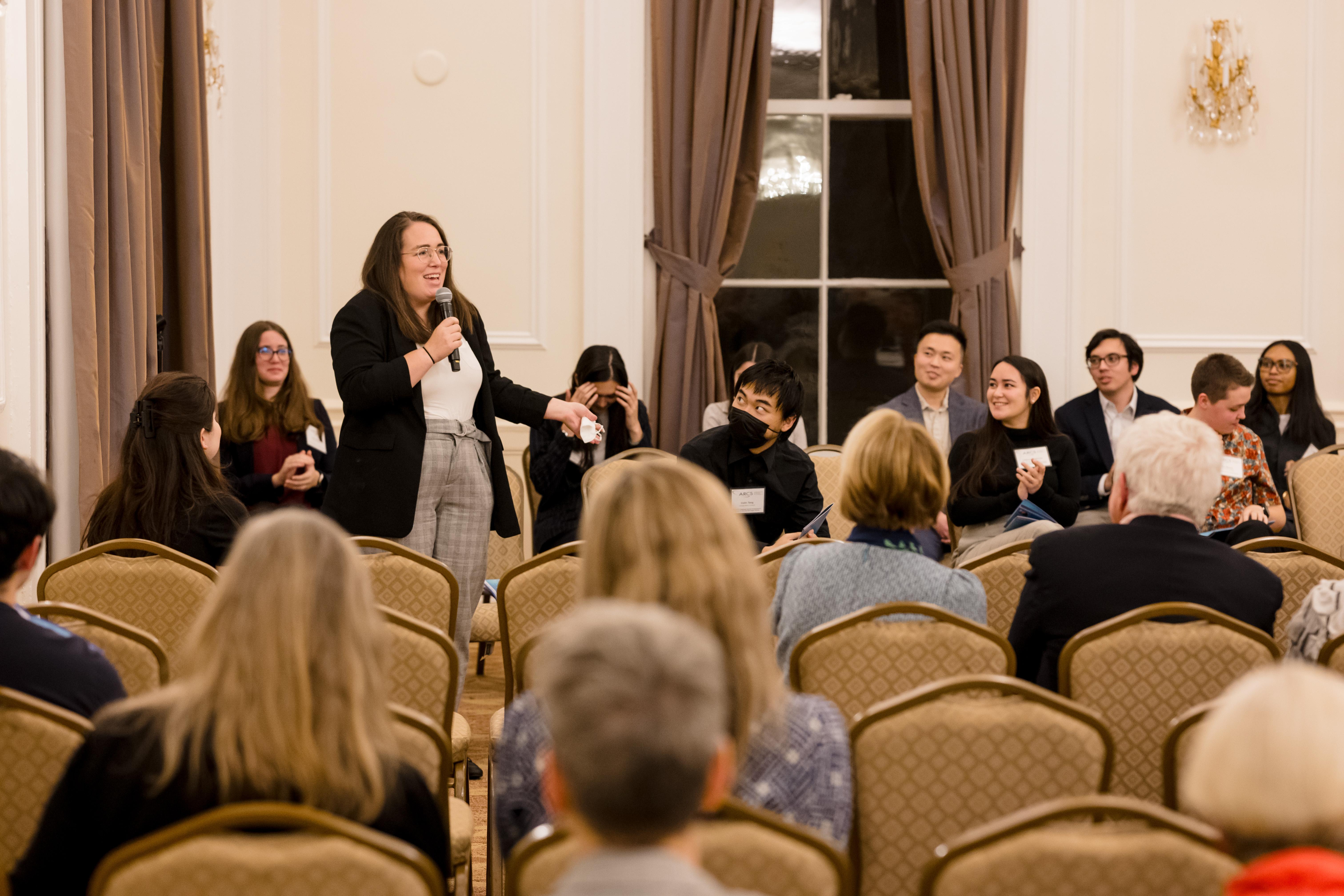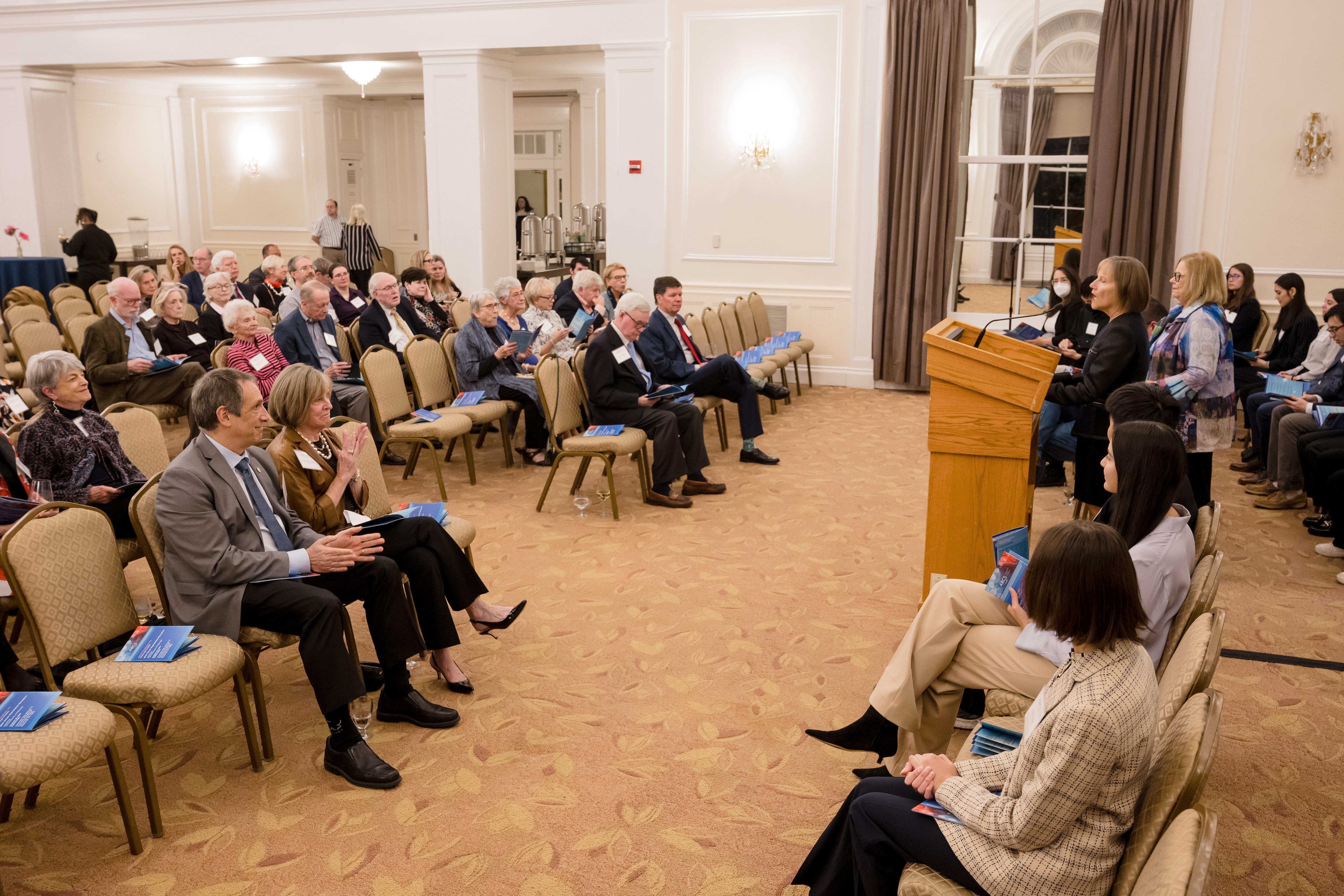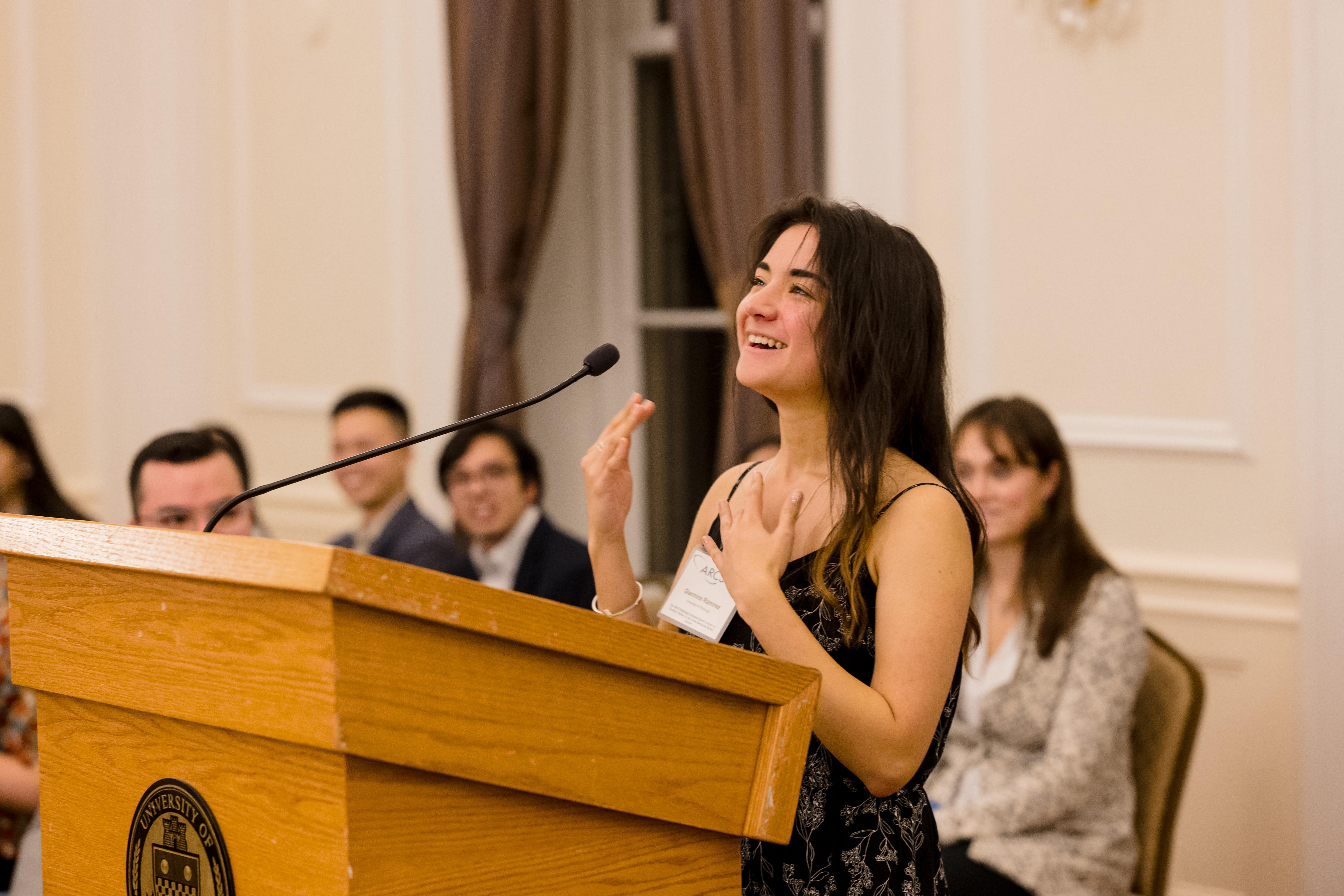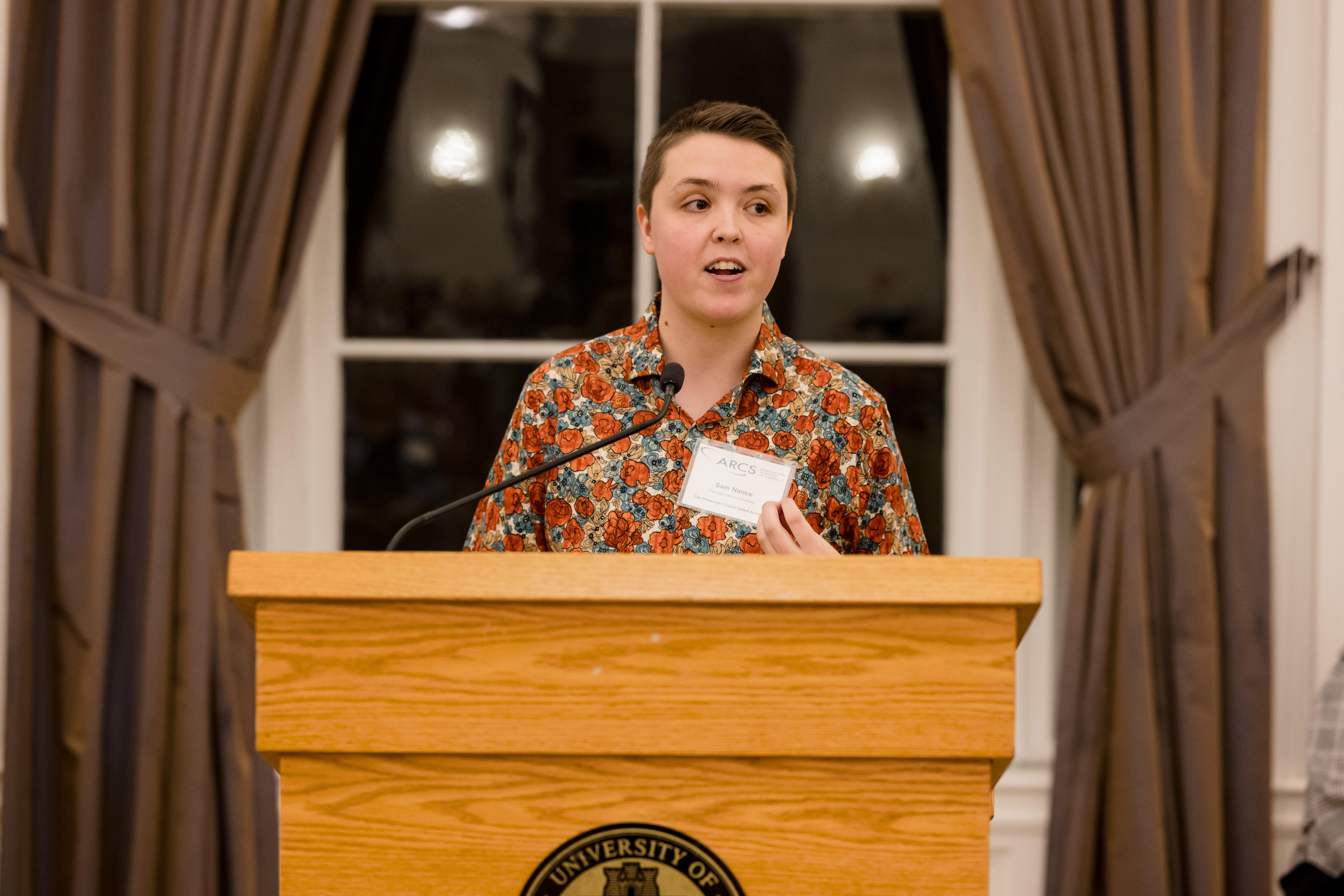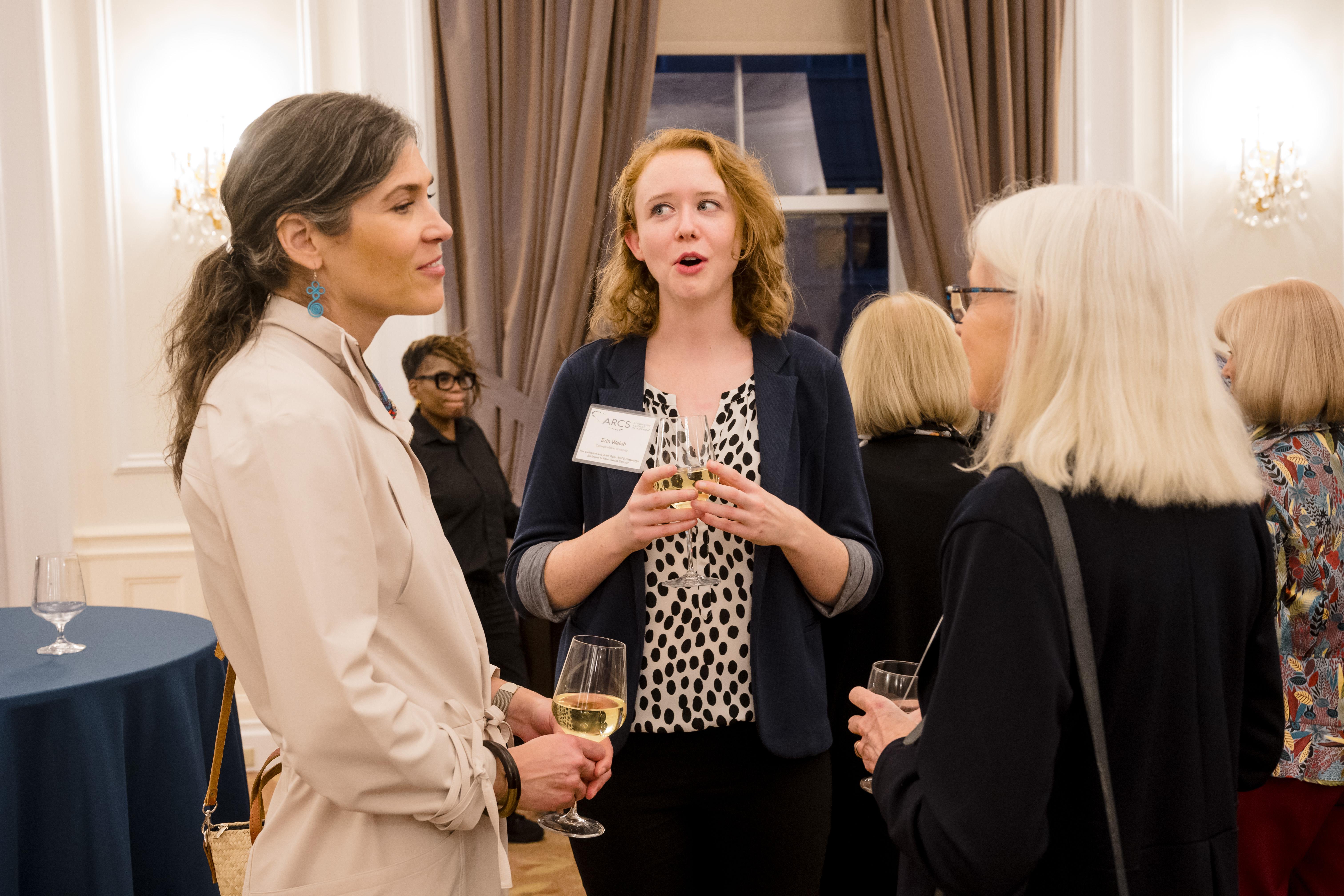 On October 30th the University of Pittsburgh hosted the Pittsburgh Chapter for our annual donor appreciation event at the University Club. After time for members, scholars, guests, and university faculty and staff to snack on hor d’oeuvres while socializing, Co- President Anne Crawford began the evening’s program. Our featured speaker was Adam Leibovich, PhD, the University of Pittsburgh’s Bettye J. and Ralph E. Bailey Dean, Kenneth P. Dietrich School of Arts and Sciences, College of General Studies. As always, the highlight of the evening was hearing from our scholars. Third year scholars Sam Nance, Carnegie Mellon University, and Giannina Ramirez, University of Pittsburgh, described their research. Additionally, each scholar shared a fun fact about themselves. The last speaker was Beth Wainwright, national president of ARCS